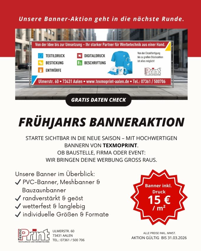 Hier findest du regelmäßig neue Highlights aus dem TexmoPrint-Angebot. Schnell sein lohnt sich!