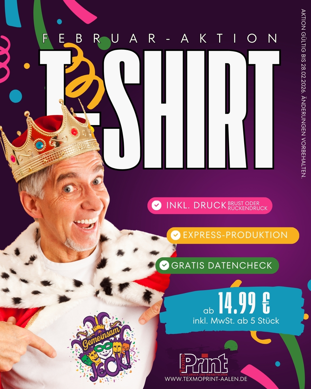 Hier findest du regelmäßig neue Highlights aus dem TexmoPrint-Angebot. Schnell sein lohnt sich!